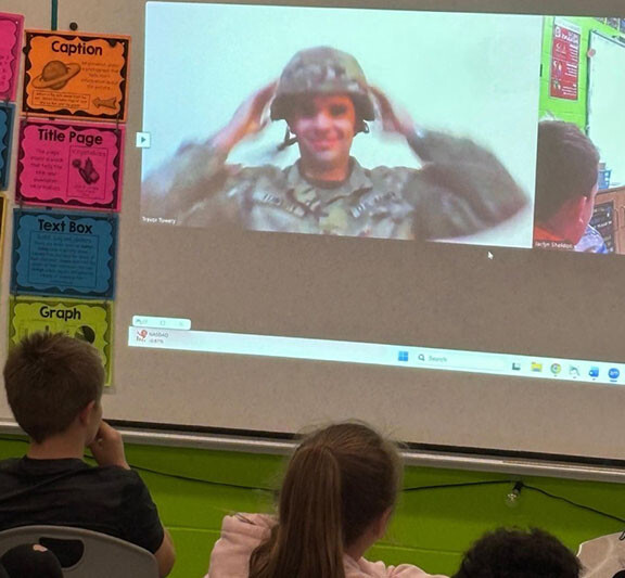 Even though he is all away around the world, Towery was able to participate in his nephew's 3rd grade class."There is a 13 hour difference, so he had to stay up late to be able to read to the students," explained Sheldon, adding that the students... "eagerly asked him questions about the Army and his role. It was a special experience for everyone."