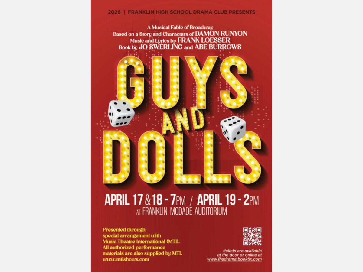 Franklin High School Drama Club will present “Guys and Dolls” on April 17, 18 (7 p.m.), and 19 (2 p.m.) Tickets are on sale now at fhsdrama.booktix.com and will be available at the door. All performances will be in the McDade Auditorium, 750 E. 4th St., Franklin.