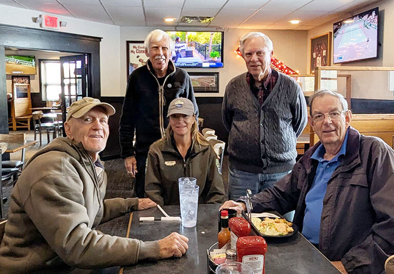 WARREN COUNTY, OH -- Five local "veteran" naturalists met for lunch and to share memories recently at The Broadway Barrel House in Lebanon. Pictured here left to right are Bill Lindauer (OCVN), Bill Schiemann (OCVN), Erin Shaw (Caesar Creek State Park Naturalist), Dave Woehr (OCVN), and Bob Henn, naturalist and author of the book Wildflowers of Ohio.