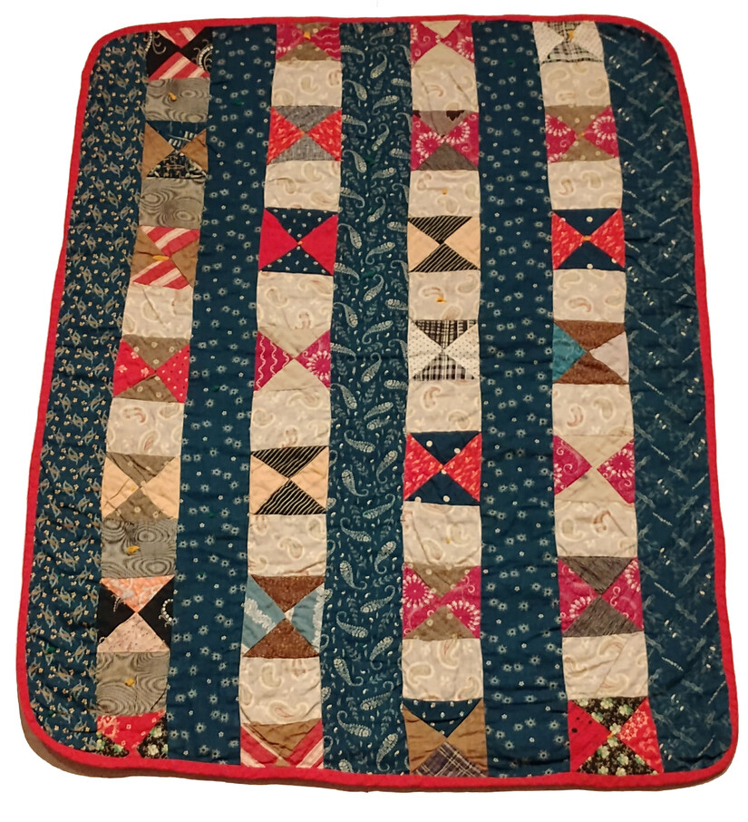 Doll quilt (1840-50)This unique show is focused around the use of classic Indigo dyes and their use in crafting quilts from the 1800s through the current day. Each quilt on display has indigo in the patterns. Twenty quilts are on display, as well as a video demonstration of the indigo dye process. A display also shows the range of indigo dying techniques, which produce various effects on the fabrics. The most exciting part of the exhibit is the diversity of the quilts on display and the artistry involved in making them.