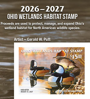 Hunters aged 18 and older are required to purchase an Ohio Wetlands Habitat Stamp to hunt waterfowl or migratory birds in Ohio, and many wildlife enthusiasts voluntarily purchase a stamp. Those looking to support wetland restoration can purchase the Ohio Wetlands Habitat Stamp for $15 at wildohio.gov.