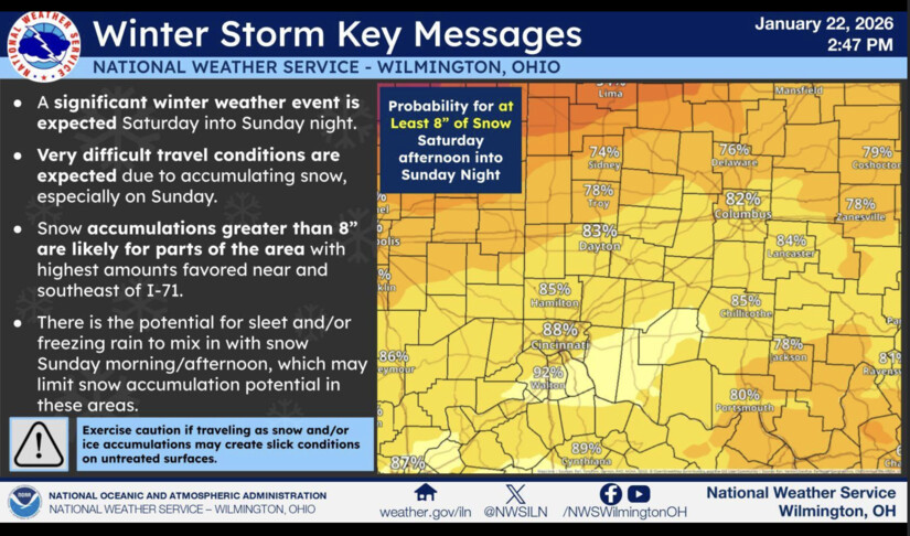 WARREN COUNTY, OH -- As many already know, a major winter storm is predicted to bring crippling ice and sleet to portions of the Southern Plains and Lower Mississippi Valley Friday into the weekend. For those of us here in the Ohio Valley, we are in an area that can possibly experience heavy snow along with temperatures being in the negative much of next week.