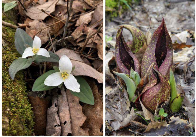 ODNR's Division of Natural Areas and Preserves will publish a weekly Ohio Spring Wildflower Bloom report to let people know where wildflowers like snow trillium (L) and skunk cabbage (R) are in bloom.Available every Friday on ODNR’s website and social media platforms, the reports are organized by region (north, south, and central) and each report offers an extensive list of which wildflowers are blooming and the best places to see them. Additionally, the reports include wildflower and state nature preserve spotlights.