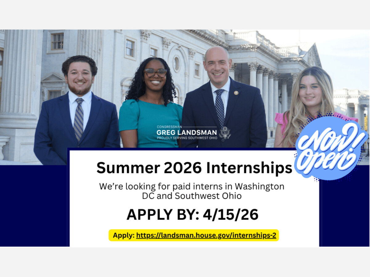 Congressman Greg Landsman announced in his weekly newsletter that applications are still being accepted for paid internships. Deadline is April 15... so there is still time!