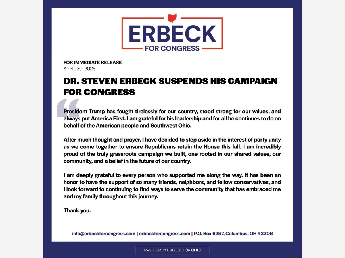 In a matter of hours, Ohio’s 1st Congressional District changed dramatically. Dr. Steven Erbeck suspended his campaign. Eric Conroy received a presidential endorsement.