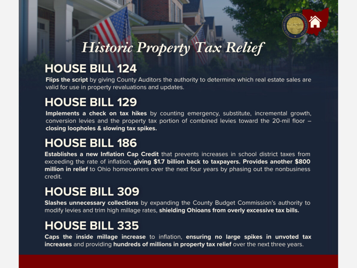 Mathews and Thomas explained that House Bills 129, 309, 186, and 335 work to curb spikes and provide direct property tax relief to Ohioans, totaling more than $3 billion in savings.