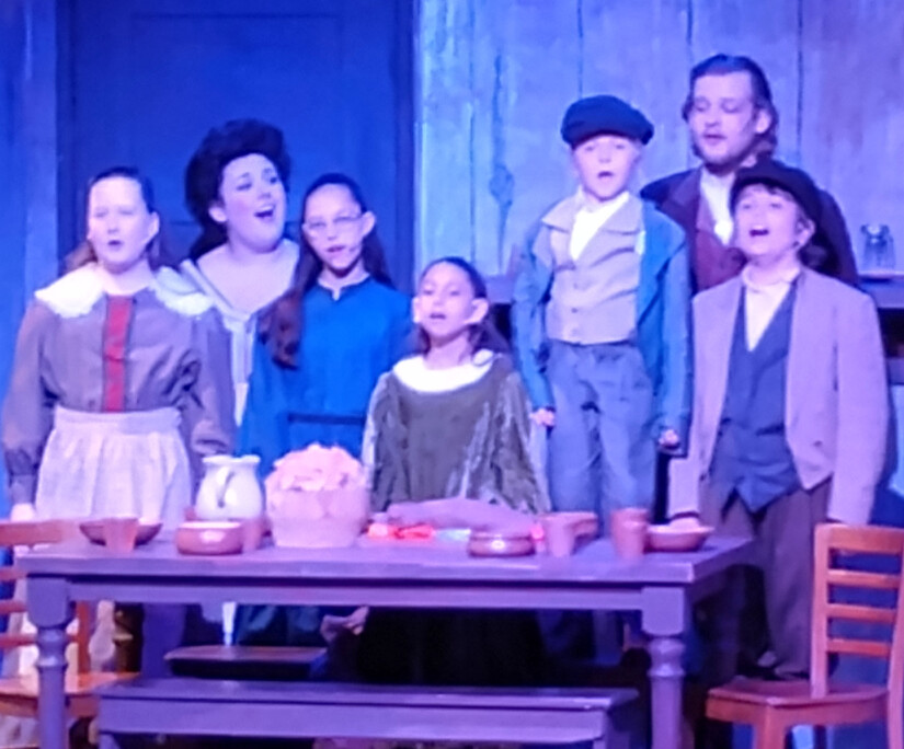 The Crachit FamilyNo production of the Christmas Carol would be complete without the Crachit Family. Bob Crachit is played ably by Ty Smith, while Mrs Crachit is portrayed with spirit by Tori Kocher. Tiny Tim is played by Micah Boone Carroll, who sang with heartfelt feeling. The children’s cast in all areas of the show were a delight! The Fezziwigs, played by Steve Lakes and Sierra Jones, added pep and humor to their scenes.