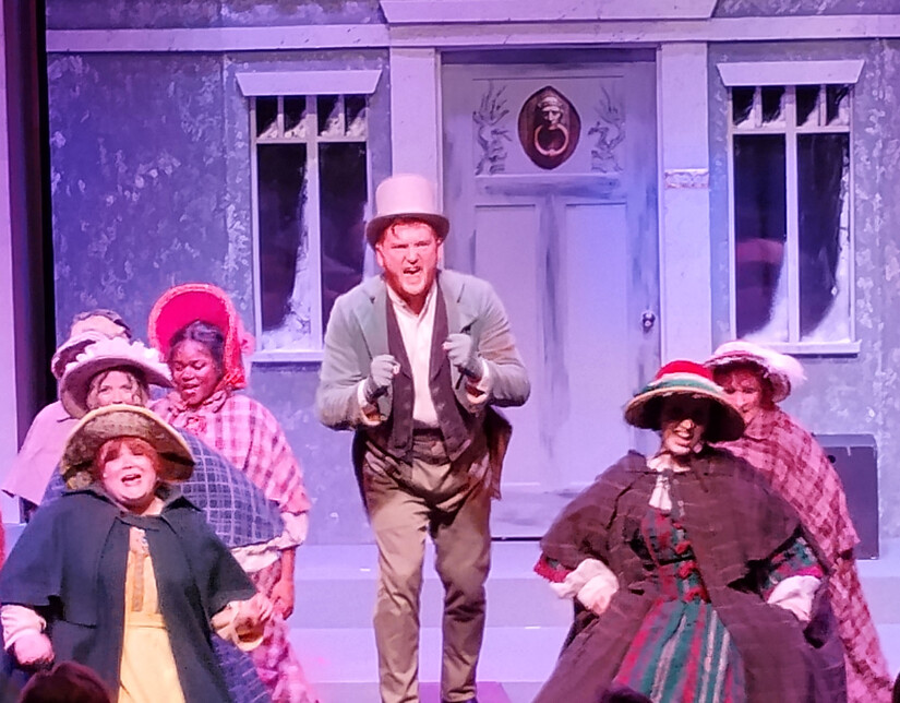 Singing and dancing their way through the show are: Jonathan Pendergrass in the multiple roles of Harry, Young Scrooge and Mallory; Georgia Marie as Isabel and Helen. With incredible energy is Dylan Jackson as Tom Jenkins, who really is a stand out with his superior musical theatre abilities in several numbers of the show in addition to his dramatic scenes .