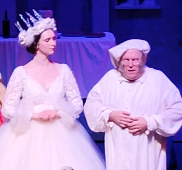 Catie Cummings as Christmas Past with Scrooge played by Chris Beiser Chris Beiser, who is also the resident Artistic Director of La Comedia, takes on the role of Ebenezer Scrooge singing the songs with a passion for the role. As the Christmas “ghosts”, Catie Cummings is the enchanting Ghost of Christmas Past, Chris Kramer shines as the Ghost of Christmas Present (Chris, also this year, is the soloist for O Holy Night at the show’s conclusion) and Garrett Hummel is the scary Ghost of Christmas Future. John Dorney provided a very terrifying but singing- Marley.
