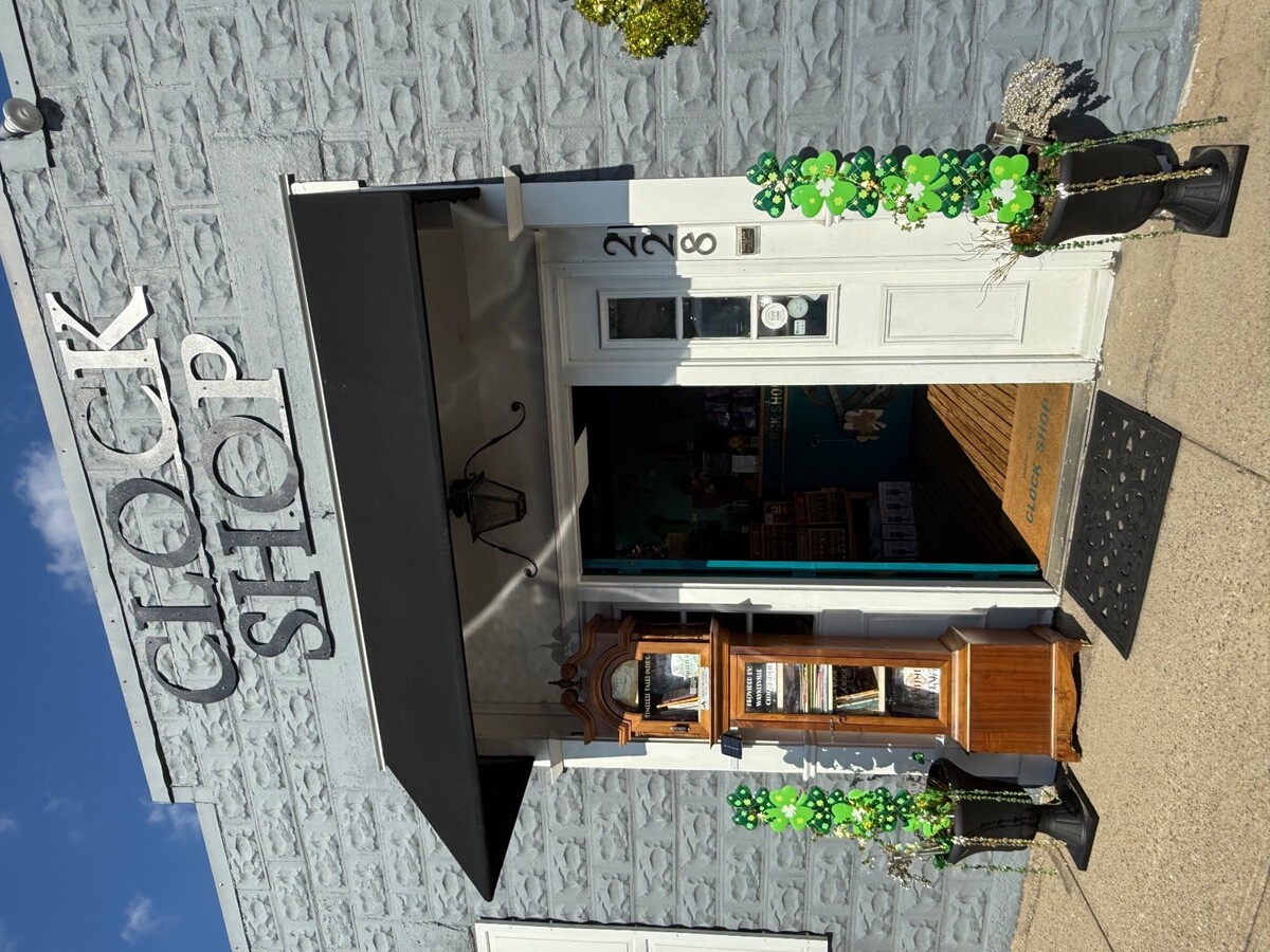 Instead of the traditional small box design, this custom-built library has been crafted to resemble a classic grandfather clock, a nod to the craftsmanship and history associated with the Clock Shop and the town itself. The unique structure blends storytelling and timekeeping in one charming piece, inviting visitors to slow down, browse, and share a book.